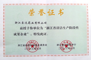 浙江省清潔生產(chǎn)階段性成果企業(yè)