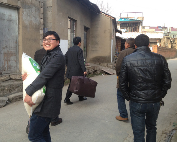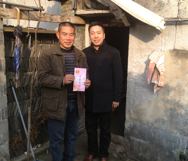 2014年1月20日,是公司給困難家庭送溫暖的第一天。下午3點(diǎn),我和周總、徐總以及各車間主任一起乘坐公司大巴車去給租住在縣城內(nèi)公司的困難職工送溫暖。距離下班2個(gè)小時(shí)的時(shí)間,我們要走訪12戶家庭,任務(wù)非常艱巨。按照事先安排好的路線,滿載著大米、食用油和過冬棉被等慰問品的大巴車緩緩行駛上路,車廂內(nèi)被物品占據(jù)僅余的位置坐的滿滿當(dāng)當(dāng)?shù)?。初春的暖?yáng)懶懶的照耀著大地,帶來(lái)久違的溫暖好天氣,車廂內(nèi)氣氛莊重而熱烈。臨近年關(guān),下午的縣城道路擁堵難行,困難職工租住的地方普遍偏僻,道路又狹窄,車隊(duì)師傅不得不把大巴停在馬路上。遠(yuǎn)遠(yuǎn)的,事先聯(lián)系好的職工已經(jīng)早早的在路口等待,我們?cè)谒麄兊膸废乱患乙患业陌菰L,給每位困難職工送去一袋大米、兩桶食用油、一床棉被以及500元現(xiàn)金,總價(jià)1000元左右的慰問物資,周總、徐總等領(lǐng)導(dǎo)還詳細(xì)詢問他們的實(shí)際生活困難,送去來(lái)自圣愛基金和公司的關(guān)懷和問候。每到一位職工家里,都受到他們的熱情接待。這些職工平時(shí)默默無(wú)聞,在公司平凡的崗位兢兢業(yè)業(yè),他他們上有老下有小,經(jīng)濟(jì)收入單一,生活壓力沉重。他們不善言辭,也有些拘謹(jǐn),但他們對(duì)公司的關(guān)懷和幫助充滿感恩之情。